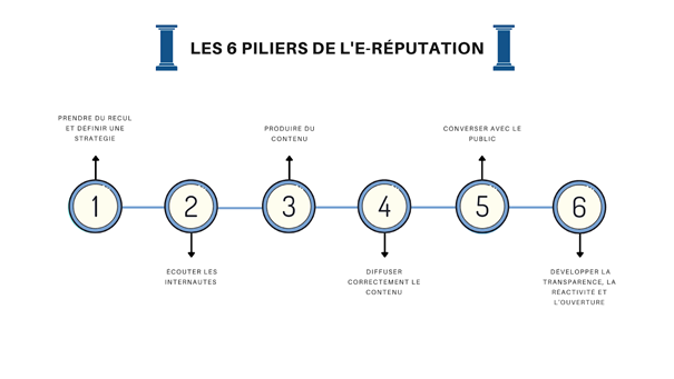 L’intelligence économique peut également permettre aux entreprises de gérer leur réputation en ligne. On peut ainsi établir plusieurs piliers de e-réputation au service des entreprises :